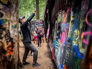 Enjoy a casual hike along the glacier-fed Cheakamus River to the remains of a train derailment from the 1950’s. At the wreck, there are 5 train cars scattered along the forest floor with massive Coastal evergreen trees that have grown around them. Some local artists have decorated the cars with amazing graffiti work. Great for a family hike. Moderate fitness level required. Please wear appropriate footwear. We recommend you bring water with you.
